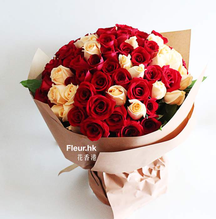 Believe in a thing called Love and say it with 99 premium grade long stemmed red roses. This bouquet consists of 33 champagne roses and 66 red roses.