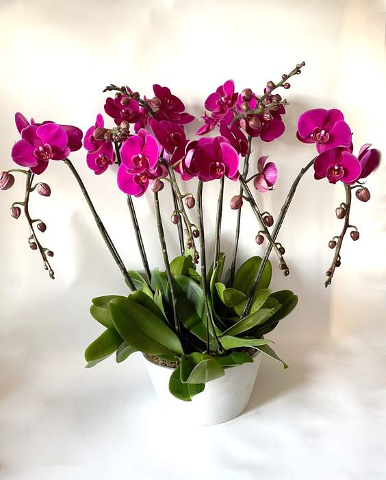 八枝紫紅色蘭花, 高貴植物花盆。大方得體,開運鏗鏘!