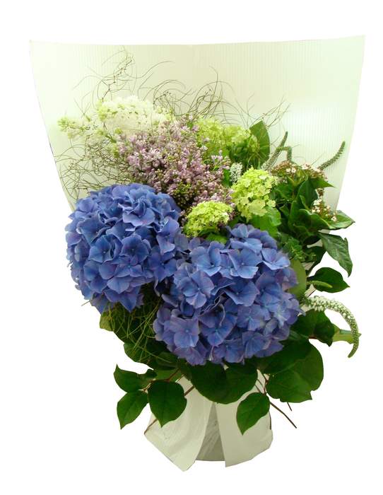 大型的花束由两个荷兰绣球,荷兰丁香花及小绿绣球等等所组成。