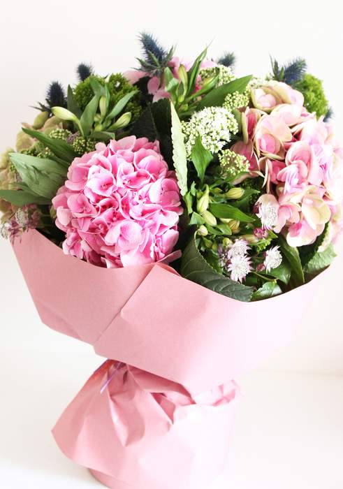 This mega size bouquet consist of 5 hydrangea of different color with assorted Holland flowers.